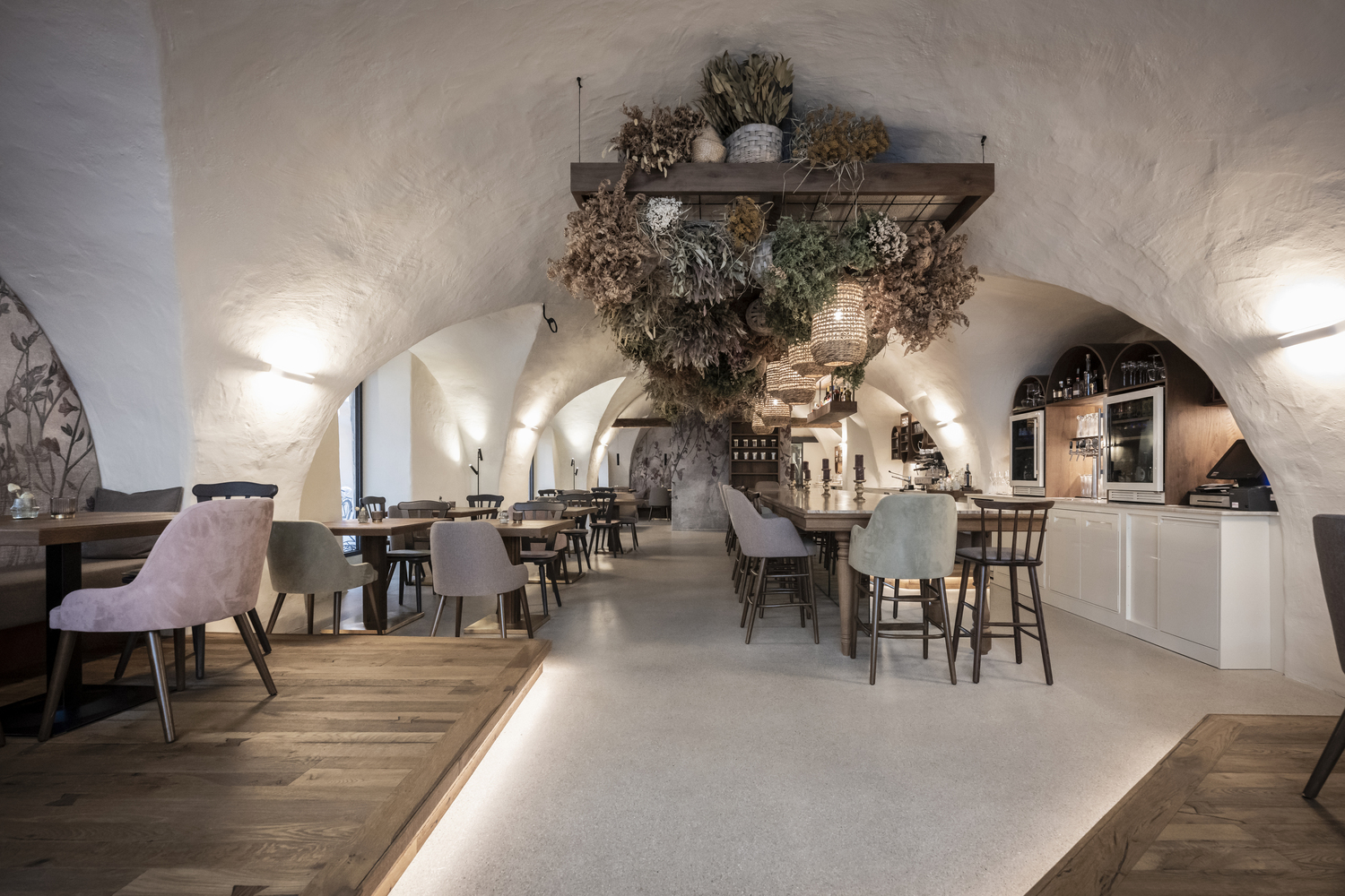 將石材紋理的地面和木材進(jìn)行搭配,將豐富的紋理變化融入到設(shè)計(jì)當(dāng)中